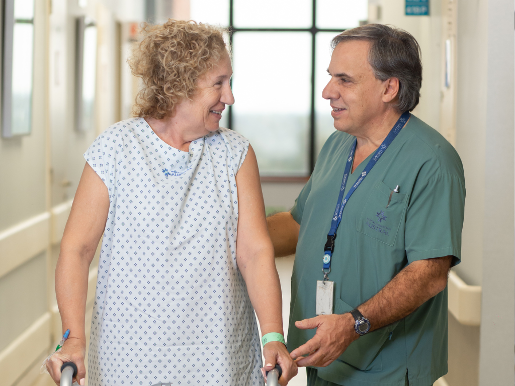 Operar es solo una parte del tratamiento. Para el doctor Mengelle, lo más importante es trabajar en equipo. “No se trata solo de operar bien. Necesitamos al clínico, al kinesiólogo, a la nutricionista, al infectólogo… todos trabajando coordinadamente”. Esa mirada integral es la base de la Clínica de la Cadera del Hospital Universitario Austral, un espacio interdisciplinario en el que el paciente es evaluado por todos los expertos el mismo día. Además, el hospital aplica un protocolo de recuperación acelerada, con deambulación precoz, alta a las 24 horas y vuelta progresiva a la rutina. “Tratamos de que no usen andador ni bastones, salvo que ya los usaran antes”, señala el especialista.